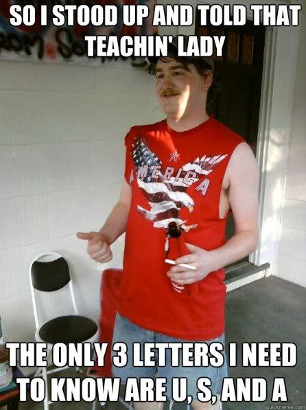 I’m reminded of that picture where the caption reads “And I told the teaching lady; the only letters I need to know are U, S and A.” /emoticons/[email protected] 2x" width=“20” height=“20” />