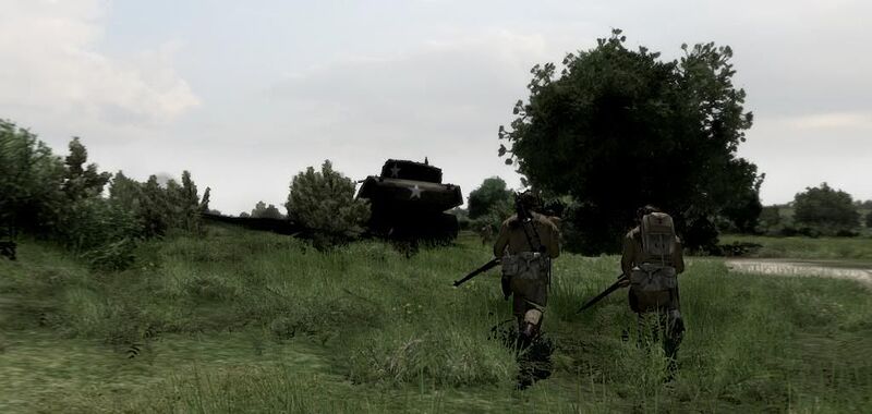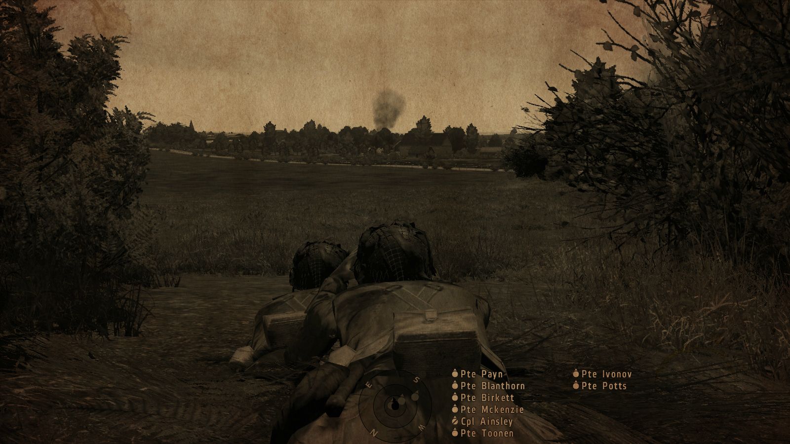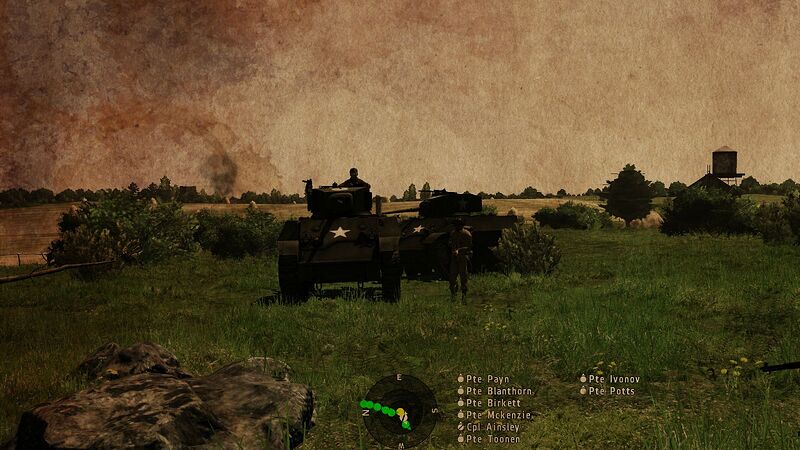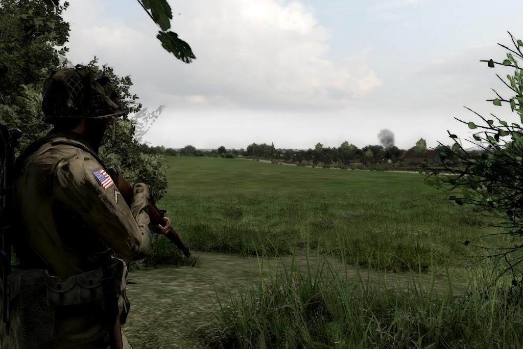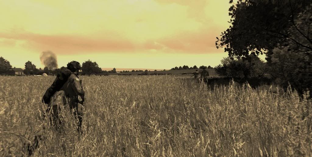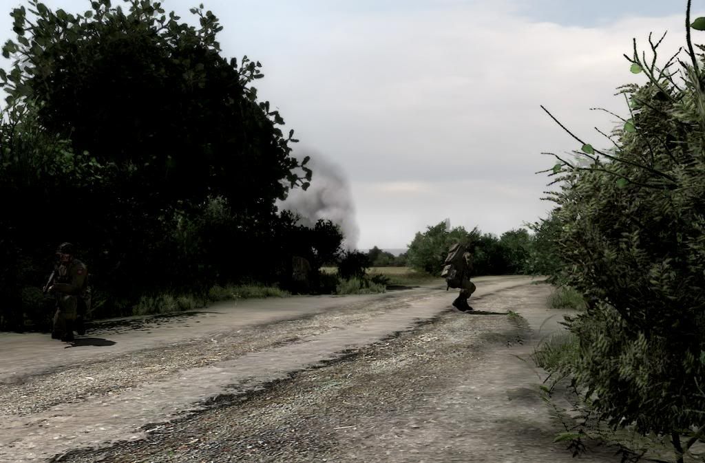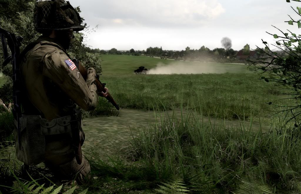 1st Platoon on fallback position after Tiger tank opened fire at Hill 92. Black smoke indicates 2nd Platoon firefights (IIRC).