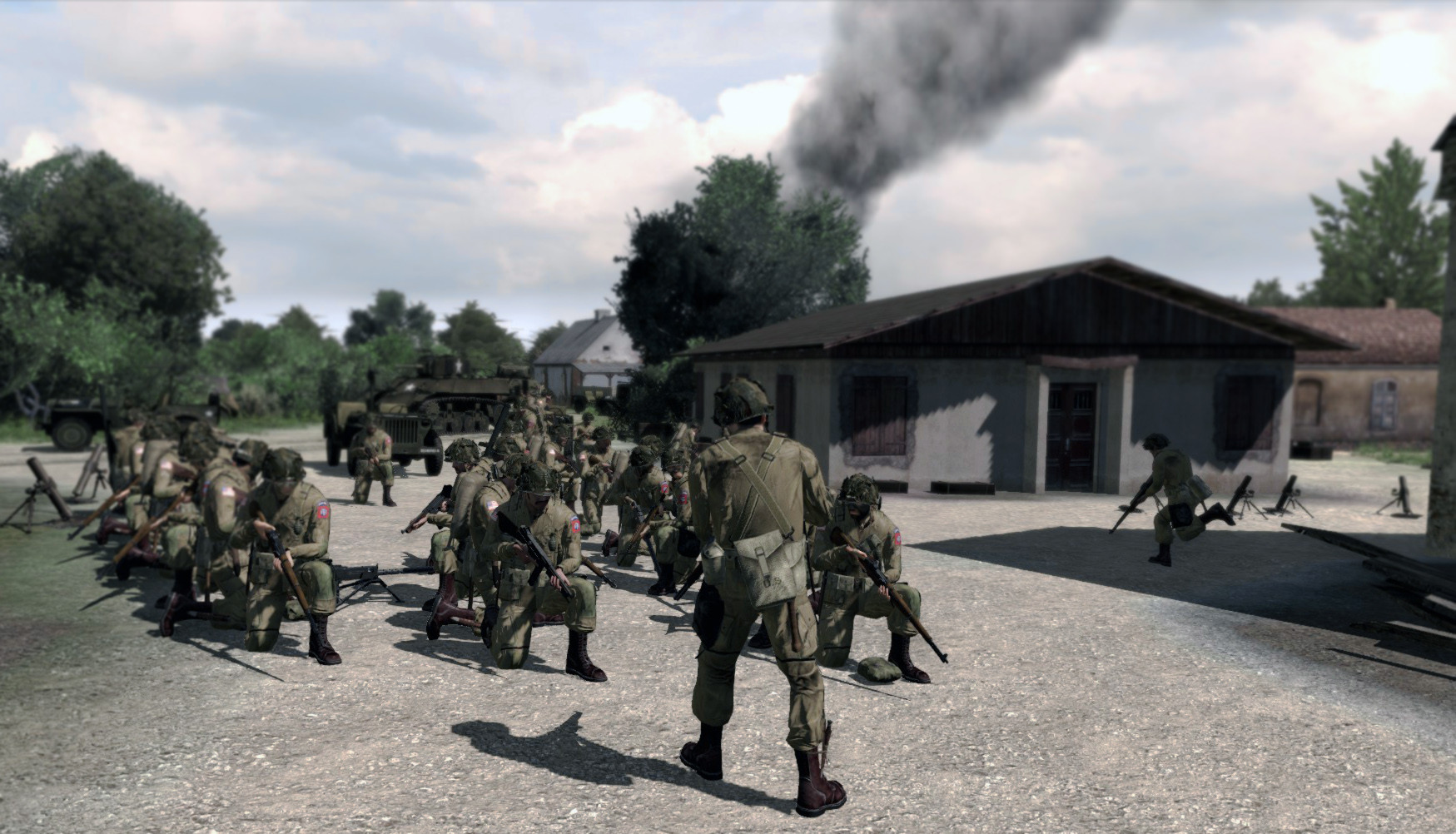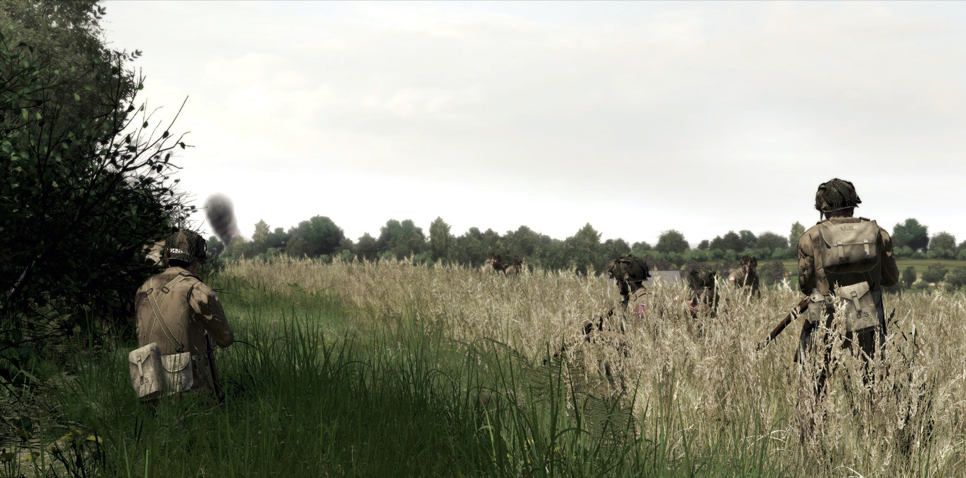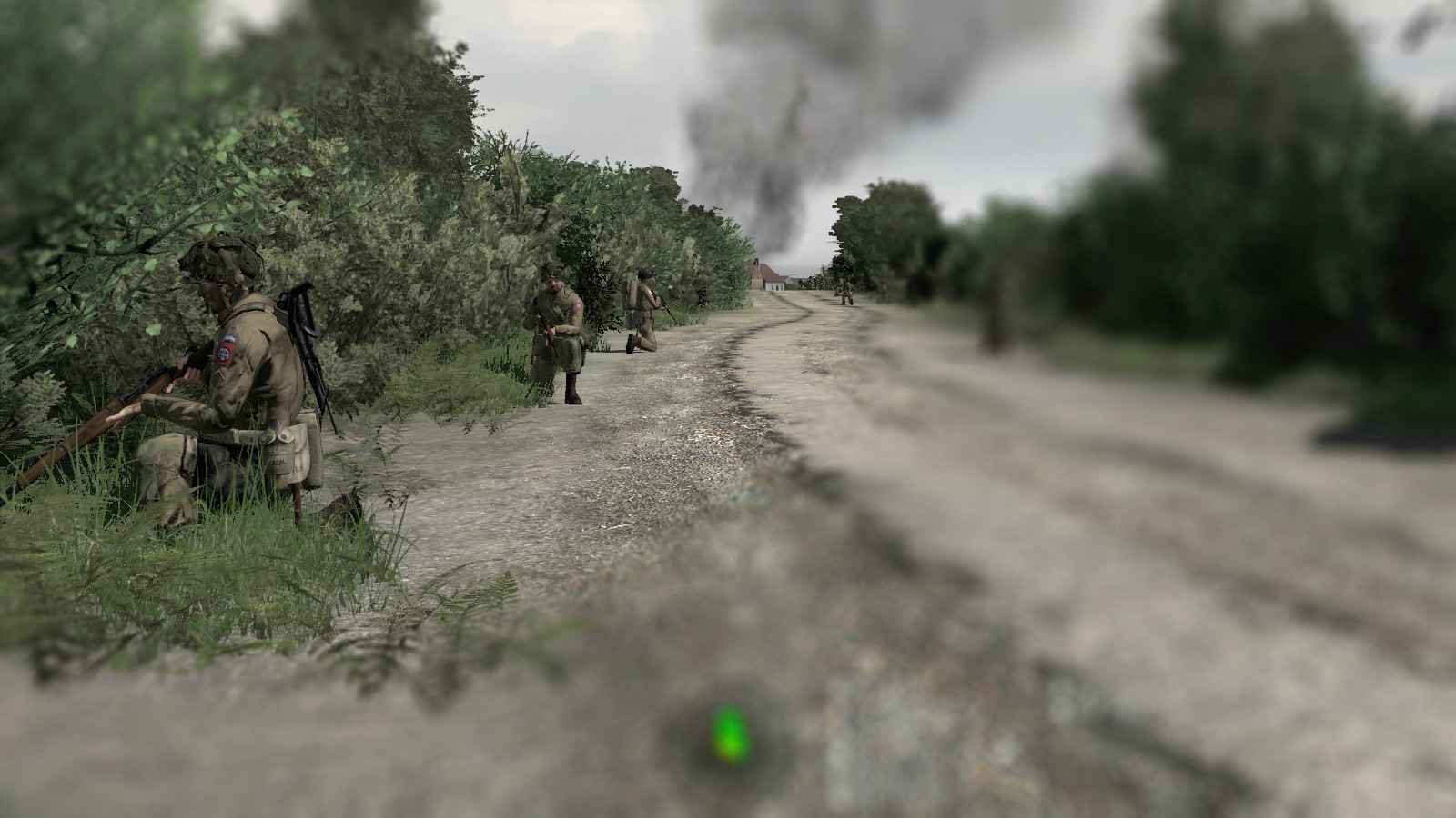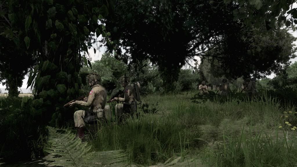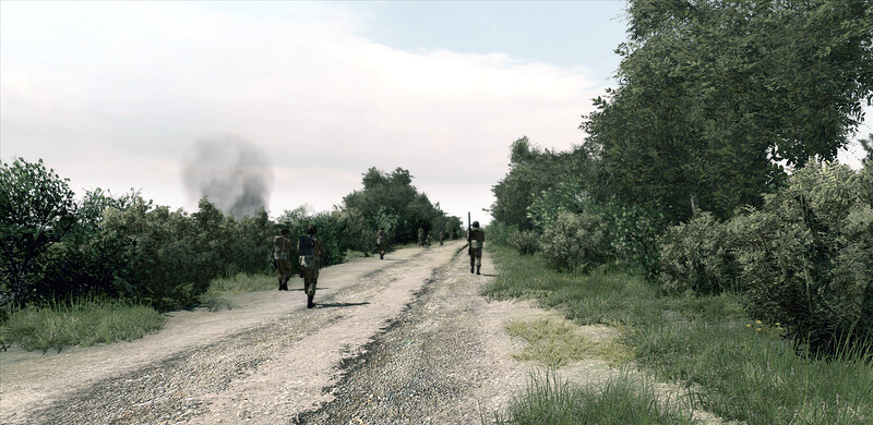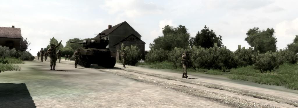 1st Platoon on fallback position after Tiger tank opened fire at Hill 92. Black smoke indicates 2nd Platoon firefights (IIRC).
