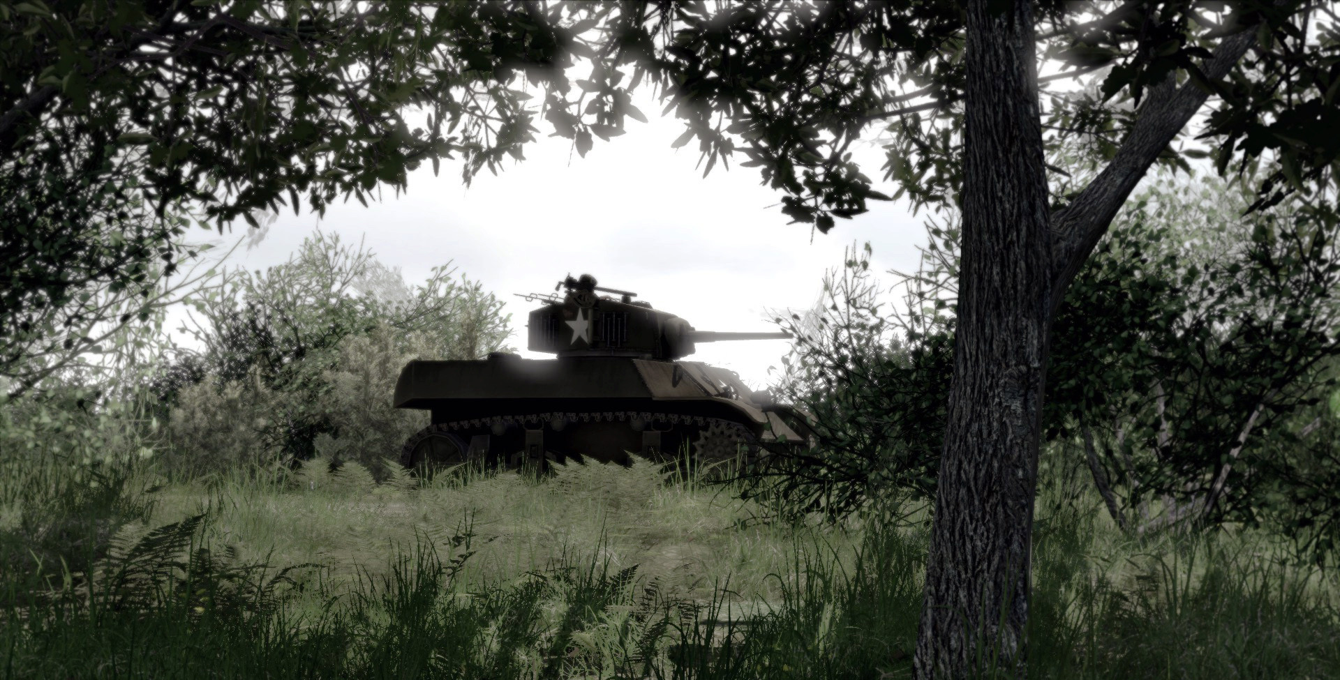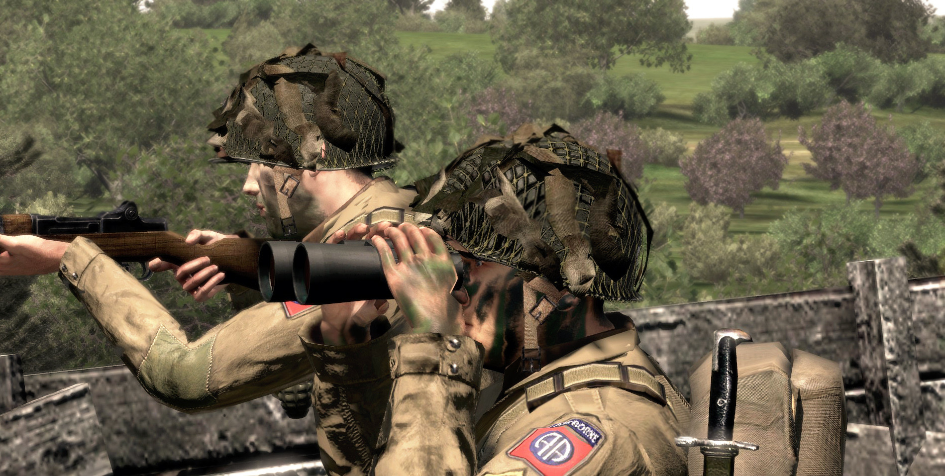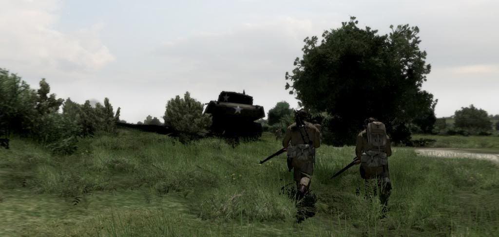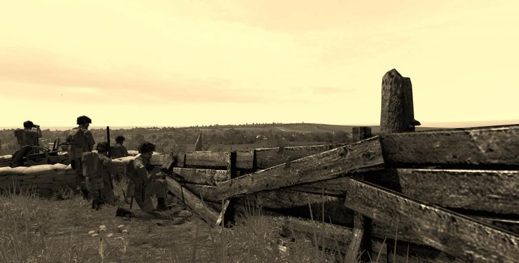 Soldiers of 1st Platoon performing overwatch from captured Hill 92. First and second Tiger tank were spotted shortly after.